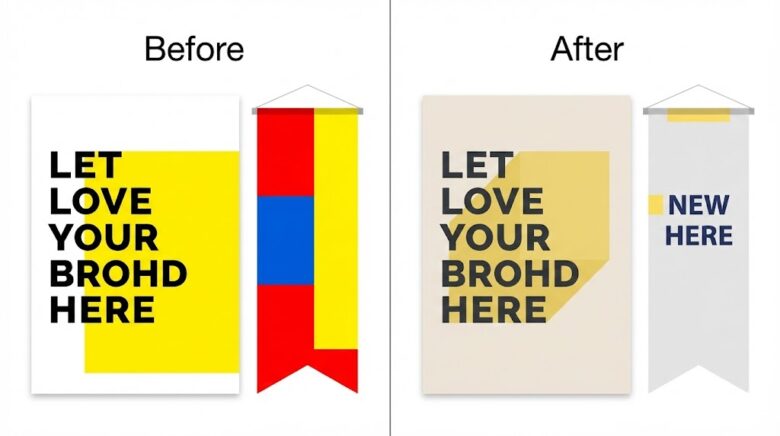 | 真っ白背景にビビッドイエロー全面 | 明度・彩度が高い色同士でまぶしく見える | 背景をオフホワイトやライトグレーにし、黄色の面積を減らす |