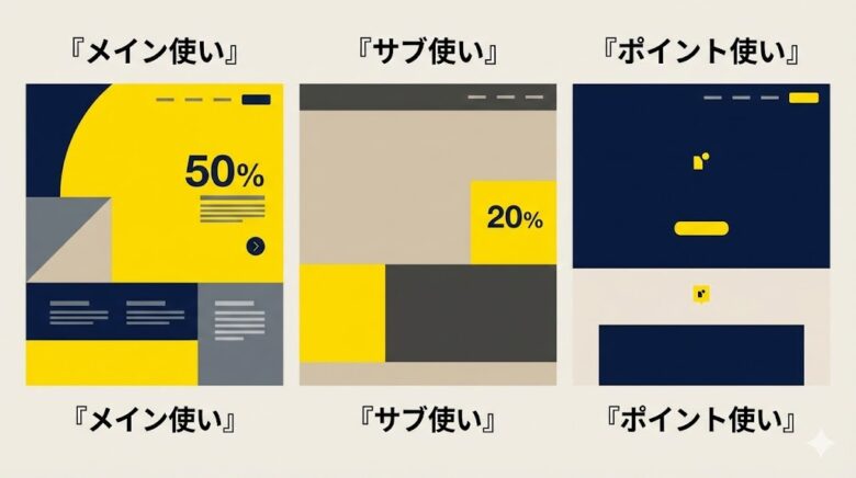 グレーとネイビーは「黄色を落ち着かせて見せるための鉄板ベース」と考えると、配色の判断がしやすくなります。