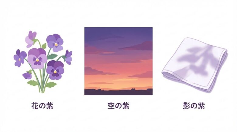最後に、実際のモチーフごとに「どんな紫が相性が良いか」をざっくり整理しておきます。